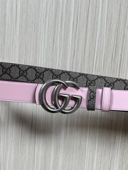 / 2025秋冬系列焕新演绎富有辨识度的Gg Marmont系列。这款双面窄版腰带采用Gg印花压纹皮革与皮革材质匠心打造,缀饰双G搭扣。 商品细节 一面为粉色Gg印