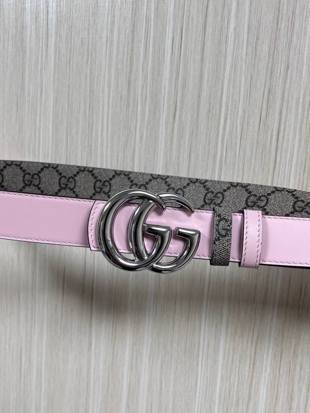 / 2025秋冬系列焕新演绎富有辨识度的Gg Marmont系列。这款双面窄版腰带采用Gg印花压纹皮革与皮革材质匠心打造,缀饰双G搭扣。 商品细节 一面为粉色Gg印
