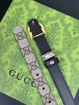 特 一面以灰杏色皮革匠心打造,另一面甄选咖色Gg Supreme帆布打造 钯金色调配件 腰带环,饰Gucci印花压纹细节 长方形搭扣...