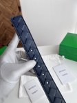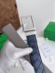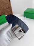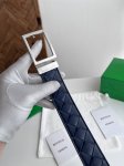 Bv 2025新款男士编织腰带 双面用 纯手工Intreccio大格子编织 双面意大利小牛皮搭配微复古银色可旋转方形扣 正面有标识 宽度35Mm 颜色: 深蓝色