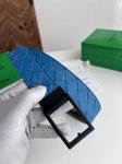 Bv 2025新款男士编织腰带 双面用 纯手工Intreccio大格子编织 双面意大利小牛皮搭配真空枪色可旋转方形扣 正面有标识 宽度35Mm 颜色: 冲浪蓝洞