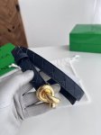 Bv 2025最新款女士编织腰带 纯手工Intreccio大格子编织 双面意大利小牛皮搭配绳结设计微复古金色搭扣 可活动皮环 皮带宽度2Cm 颜色: 太空蓝