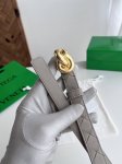 Bv 2025最新款女士编织腰带 纯手工Intreccio大格子编织 双面意大利小牛皮搭配绳结设计微复古金色搭扣 可活动皮环 皮带宽度2Cm 颜色: 海燕灰