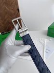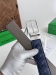 / Bv 2025最新款男士编织腰带 双面用 纯手工Intreccio大格子编织 双面意大利小牛皮搭配微复古银色可旋转针扣 皮带宽度35Mm 颜色: 深蓝色柏绿色