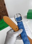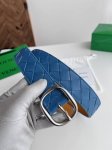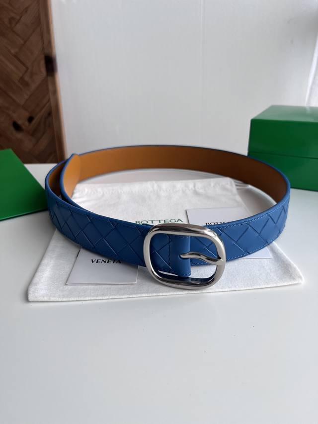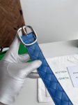Bv 2025最新款男士编织腰带 纯手工Intreccio大格子编织 双面意大利小牛皮搭配椭圆形微复古银色针扣 宽体大针搭配扁孔设计尖尾 侧面有标识 皮带宽度35Mm 颜色: 冲浪蓝 金棕色