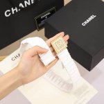 Chanel Cc方块 树脂白 与 黑 Logo小方块 黄铜Logo扣 小牛皮 银色金属 与 金色金属 3.0Cm精品 弹力十足 百搭 优雅 码数含扣S=65Cm总长 可用75、80、85 M=70Cm L =75Cm Xl=80Cm 一个尺寸可以拉开3到4个码数使用!