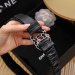 宽度3.0Cm Chanel 香奈儿 经典款平纹 两面牛皮搭配 金 银 色镶钻钢扣。