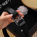 宽度3.0Cm Chanel 香奈儿 女士腰带皮带新款柔软的内衬进口小牛皮搭配精品镶钻钢扣金 银色扣。