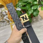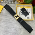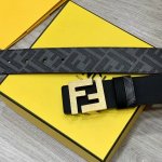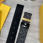 Fendi 芬迪 专柜同款 宽4.0Cm 双环正反用腰带 Ff按钉搭扣 双色Cuoio Romano皮革材质 反面面料带有烟草黄和黑色Ff图案 黑色珐琅金属饰面