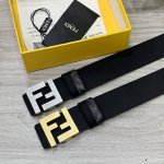 / Fendi 芬迪 专柜同款 宽4.0Cm 双环正反用腰带 Ff按钉搭扣 双色Cuoio Romano皮革材质 反面面料带有烟草黄和黑色Ff图案 黑色珐琅金属饰面