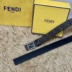 fendi 芬迪 专柜同款 宽4.0Cm 双环正反用腰带 Ff按钉搭扣 黑色Cuoio Romano皮革材质 反面面料带有烟草黄和黑色Ff图案...