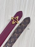 Flowergram 双面腰带选用 Monogram 帆布和 Monogram 压纹皮革演绎两式风尚,以宛若珠宝的柔美搭扣致意 Monogram 花卉,可为各式造型注入典雅风采。3.0酒红荔枝纹双尖四叶金扣。