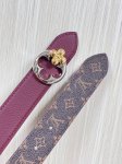 Flowergram 双面腰带选用 Monogram 帆布和 Monogram 压纹皮革演绎两式风尚,以宛若珠宝的柔美搭扣致意 Monogram 花卉,可为各式造型注入典雅风采。3.0酒红荔枝纹双尖圆扣金花。