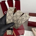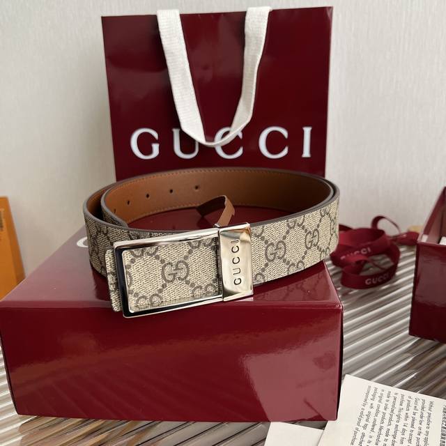 G家顶級原單 原版復刻出品 寬度3.5 於經典之中融入新意 带身饰有双G标识 原厂牛皮底 搭配方形镂空字母扣 对版专柜 红色原版盒加15