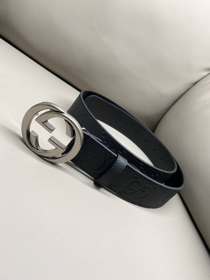 / Gg 4.0宽典藏设计中的标志性元素于 早秋系列焕发新意。这款腰带选用黑色超级双G皮革打造,互扣式双G银色调配件更添个性魅力。