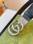 带宽3.8Cm Gucci 互扣式双g原单纹理钢扣腰带,采用热压印技术的gucci Signature皮革精制而成,触感厚实,印花图案清晰分明。