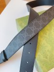 Gucci 专柜最新款灰色帆布皮搭配灰色猪纹皮革可双面使用设计。宽度3.8Cm 旋转双g搭扣