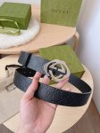 Gucci 连锁 G 扣带,在热 De Bos Sed 古驰签名皮革与定义打印和坚定的纹理。 黑色古驰签名皮革 钯色调的硬件 联锁 G 扣 4.0Cm宽度 意大
