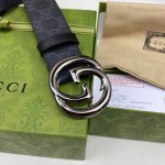 / Gucci Gg Supreme高级人造帆布,可分解材料,配以黑色皮革滚边,搭配双G带扣,4.0宽 本款腰带适用低腰和高腰两种穿戴方式