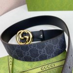 Gucci Gg Supreme高级人造帆布,可分解材料,配以黑色皮革滚边,搭配双G带扣,4.0宽 本款腰带适用低腰和高腰两种穿戴方式