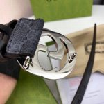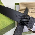 / Gucci Gg Supreme高级人造帆布,可分解材料,配以黑色皮革滚边,搭配双G带扣,4.0宽 本款腰带适用低腰和高腰两种穿戴方式