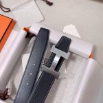 爱马仕 Hermēs Box/Togo小牛皮双面腰带,镀钯腰带扣。38毫米