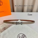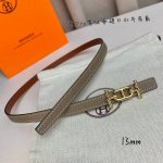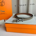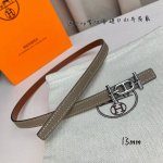 HermèS 爱马仕女款细腰带 原单品质 原版进口E手掌纹配进口小牛皮底 双面可用 灰色土黄色 13Mm宽 搭配H亮金 银扣