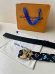 Lv Initiales 4.0宽 腰带焕新标志性设计,以经典 帆布和柔软牛皮革呈现双面风尚,经典丝印路易威登Logo Lv 字母搭扣散发前卫气息,提供多种造型选择。