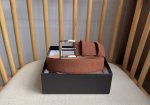 / Prada 普拉达 专柜最新款 这款绒面皮革腰带风格简约而不失精致 末端醒目装饰涂珐琅三角形金属徽标 是品牌的标志性材质 男女通用 宽3.5