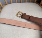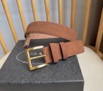Prada 普拉达 专柜最新款 这款绒面皮革腰带风格简约而不失精致 末端醒目装饰涂珐琅三角形金属徽标 是品牌的标志性材质 男女通用 宽3.5