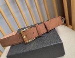 / Prada 普拉达 专柜最新款 这款绒面皮革腰带风格简约而不失精致 末端醒目装饰涂珐琅三角形金属徽标 是品牌的标志性材质 男女通用 宽3.5