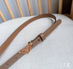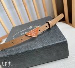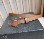 特 Prada 普拉达 专柜最新款 这款腰带设计简约而不失精美 金属搭扣呈现标志性的三角形徽标轮廓 彰显品牌格调...