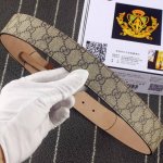 Gucci宽度4.0Cm 一侧为gg Supreme高级人造帆布,反面一侧为单色头层磨砂底、配以interlocking 菱形双层带扣。
