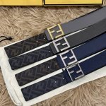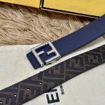 / 图片包装+10 Fendi 芬迪 专柜同款 宽4.0Cm 双环正反用腰带 Ff按钉搭扣 深兰色Cuoio Romano皮革材质 反面面料带有烟草黄和黑色Ff图案