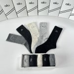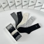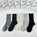 特 配包装 Alo 新款彩绘刺绣中长筒款堆堆袜袜子!一盒五双, 专柜同步筒款袜子,大牌出街,潮人必备超好搭