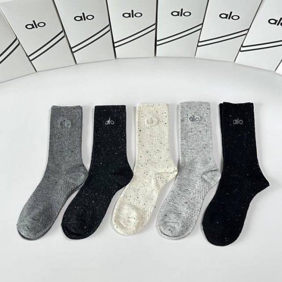 / 特 配包装 Alo 新款彩绘刺绣中长筒款堆堆袜袜子!一盒五双, 专柜同步筒款袜子,大牌出街,潮人必备超好搭