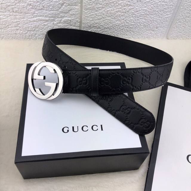 特 Gucci.古驰 全套包装 3.8Cm进口小牛皮压花, 专柜正品1:1完美复刻. 原版底皮, 采用热压印技术的Gucci Signature皮革精制而成,触