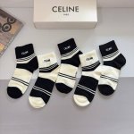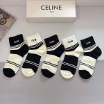 配包装 一盒5双 Celine 赛琳新款刺绣纯棉袜子 经典字母Logo船袜,个性时尚百搭款,!超柔软材质,舒适透气,时尚百搭款