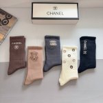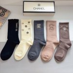 / 配包装 一盒5双 Chanel 香奈儿经典长筒袜子、高版本兔绒材质 ,经典C字母图案Logo,大牌出街,潮人必备,超好搭!