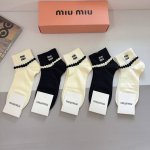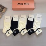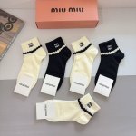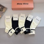 配包装 一盒5双 Miumiu 缪缪新款刺绣纯棉袜子 经典字母Logo船袜,个性时尚百搭款,!超柔软材质,舒适透气,时尚百搭款