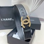 宽度3.0Cm Chanel 香奈儿 女士腰带皮带新款柔软的内衬进口小牛皮搭配精品镶钻钢扣金 银色扣。