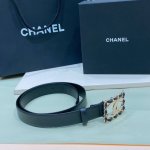 Chanel 24C 黄铜金属 水钻黑 与 白Logo搭扣 黄铜金属进口羊皮带身 饰有Cc小Logo手感柔软 细腻 3.0Cm