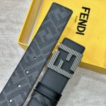 Fendi 芬迪 专柜同款 宽4.0Cm 双环正反用腰带 Ff按钉搭扣 黑色Cuoio Romano皮革材质 反面面料带有烟草黄和黑色Ff图案 黑色珐琅金属饰面