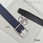 HermèS 爱马仕针扣 原单品质 进口头层牛皮 深蓝色荔枝纹搭配黑色平纹 32Mm宽 双面可用 配官网H亮金 亮银扣 DDD