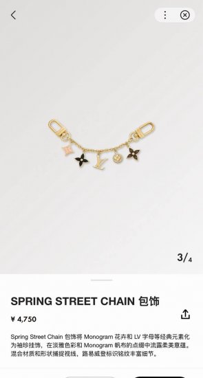 / Lv钥匙扣 官网M01188 包包挂饰 Spring Street Chain 包饰将 Monogram 花卉和 Lv 字母等经典元素化为袖珍挂饰,在淡雅色彩和