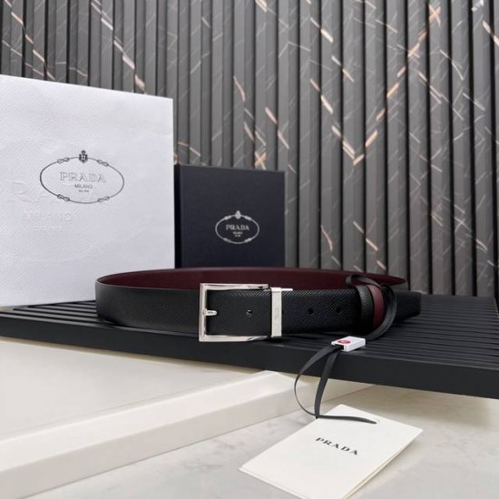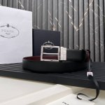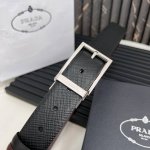 prada官网同步,普拉达Saffiano皮革双面用新款针扣,腰带宽度 3.4厘米带扣配雕刻铭牌 DDD