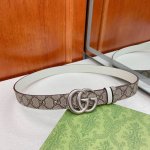 Gucci宽度4.0Cm 一侧为gg Supreme高级人造帆布,反面一侧为单色头层磨砂底、配以interlocking 菱形双层带扣。