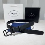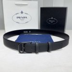 Prada 普拉达 双面头层牛皮 男士简约商务休闲针扣 宽3.5Cm 顶级做工 品质保证 手感极佳 原单品质