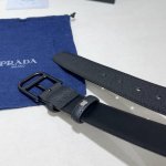 / 普拉达,Saffiano 牛皮腰带 挺拔有型!百搭大方,宽3.5Cm 官网同步,进口小牛皮材质,时尚简约款、商务休闲均可使用! 沙黑扣 。