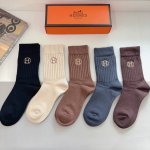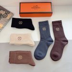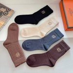 配包装 一盒5双 Ddd Hermes 爱马仕 高版本刺绣羊绒长筒袜子潮人必不可少的时尚专柜代购长筒袜子 ,超级好搭配! DDD